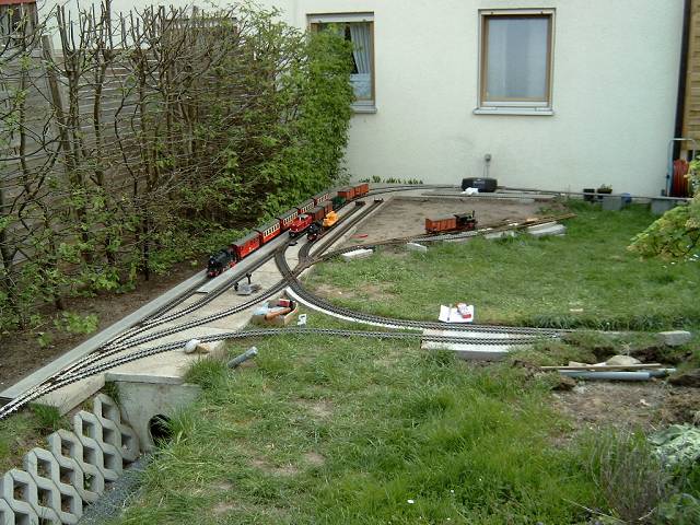 Nun ist es leider so das der Bahnhof genau über die Kellerausfahrt kommt, also am tiefsten Punkt im Gelände