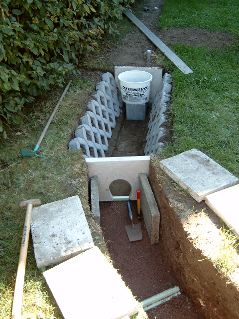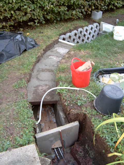 Bild A zeigt (Richtung Tunnel 1) die *Revisionsschlucht, diese habe ich mit Rasengittersteinen verkleidet,