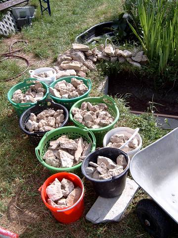 Dann habe ich mir ein paar Steinchen geholt, die gibt es zuhauf gratis neben Steinigen Feldern,