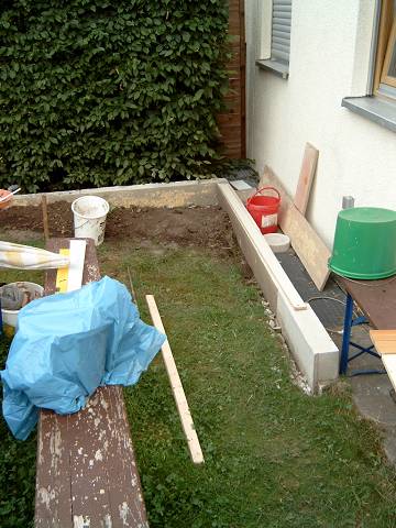 Einfach Erde aufschütten vor den Kellerfenstern geht nicht - also ist erst einmal eine kleine Mauer Fällig