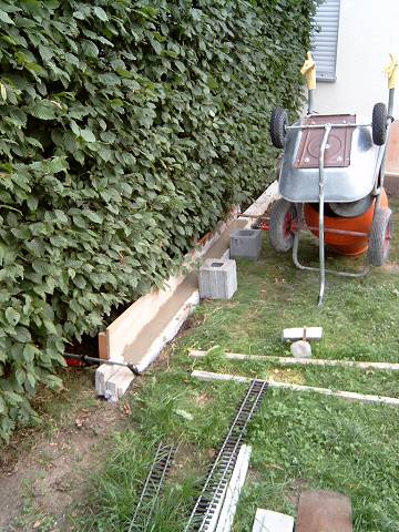 Am billigsten geht das mit Beton, hier das fast fertige Mäuer'chen: