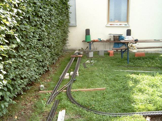 Der ganz rechte Abzweig der Dreiwegweiche soll zur Laderampe mit Rollbockgrube gehen..........