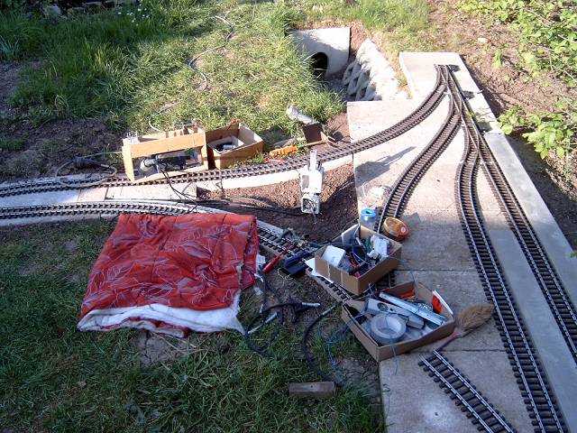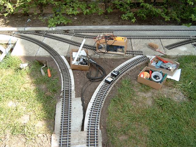 Die Kabel laufen alle in der Mitte im Gleisdreieck zusammen.