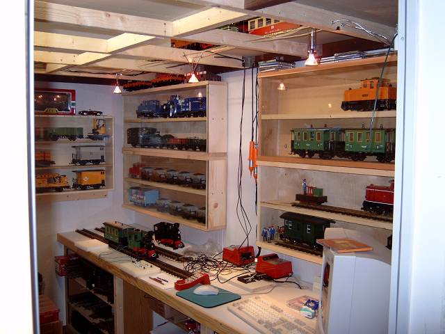 da ist von nun an mein Gartenbahn - Lager und Bastelkeller sowie der Schattenbahnhof (35cm unter der Decke) untergebracht: Ja, auch wenn jetzt einige die Nase rümpfen, Das LGB MZS Digitalsystem ! Ich denke für einen Anfänger ist das erst einmal das beste, Stecker rein und fertig, mann mus (fast) nichts Programieren und kann gleich losfahren. Ich spiele schon immer gerne mit dem PC, da kann man mit dem LGB Zeuch erst einmal nichts falsch machen die Software ist sehr leicht zu bedienen und dank ebay kann man ja später (fast) ohne Verlust auf ein richtiges Digitalsystem umsteigen |