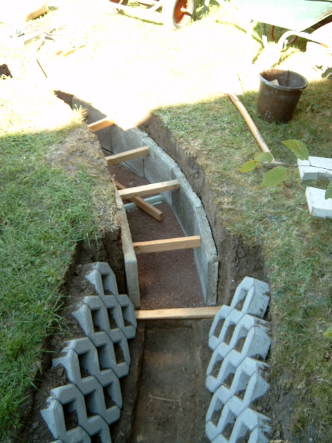 Bild A zeigt (Richtung Tunnel 1) die *Revisionsschlucht, diese habe ich mit Rasengittersteinen verkleidet,