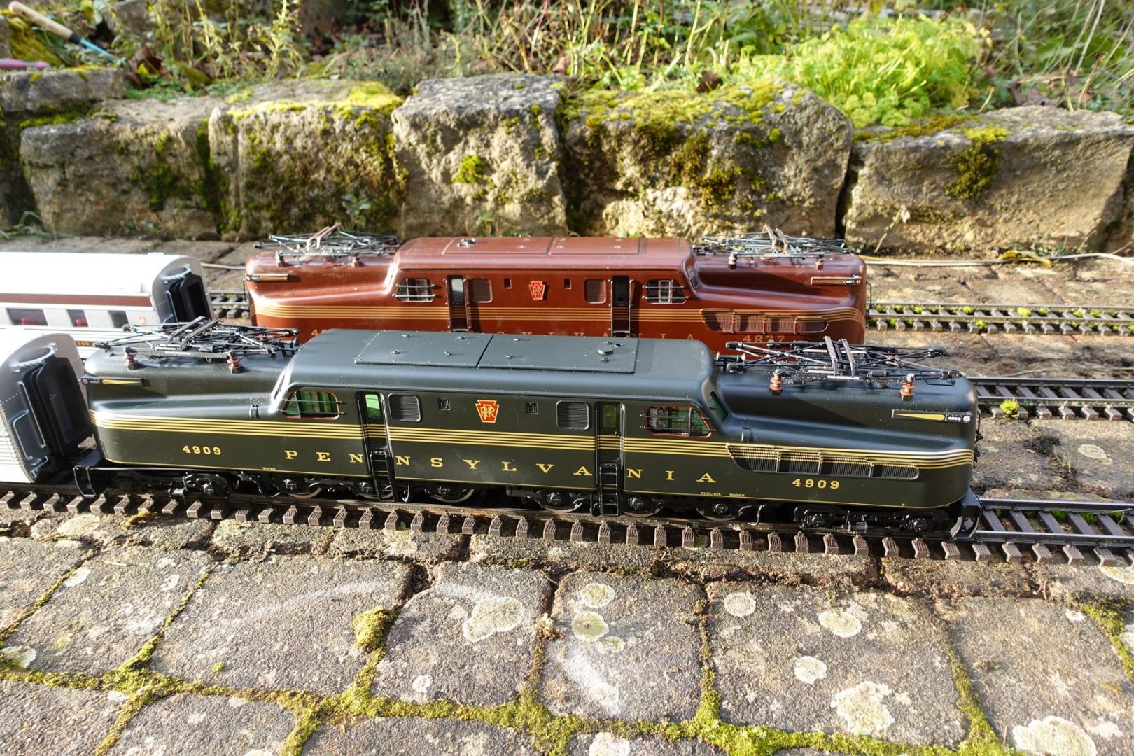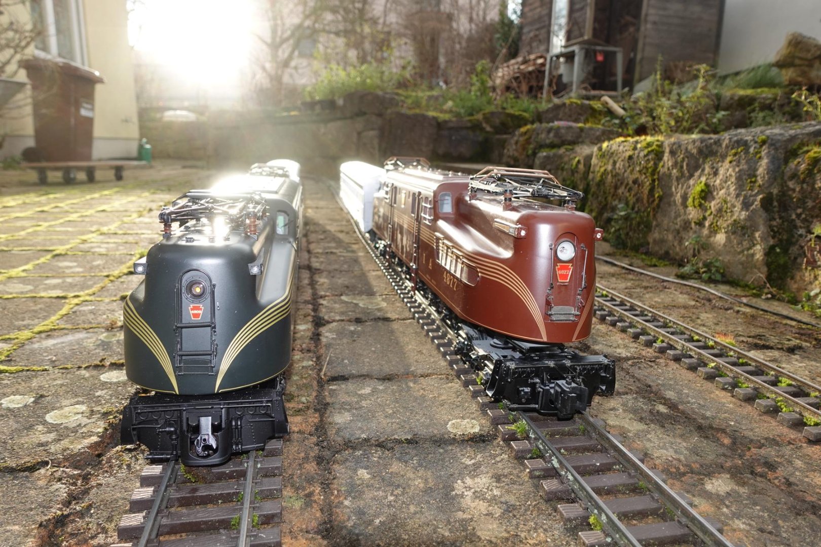 an anderer Stelle habe ich eine (gebrauchte) Neuanschaffung von mir gezeigt, die GG1 von LGB, und wurde gebeten, diese mit der GG1 von USA-Trains zu vergleichen. Diese ist seit ein paar Jahren in meinem Besitz. Nun bin ich gar kein Freund davon, Äpfel mit Birnen zu vergleichen. Bald kommt ja auch die Shay von LGB (Märklin) auf den Markt und Bachmann hatte die Lok ja auch schon mal im Portfolio, letztere ist auch in meinem Bestand. Bei diesen beiden Loks wird ein Vergleich noch schwieriger, weil die Bachmann-Lok eine (relativ billige) Kunststoff-Lok ist und die LGB-Shay als Metall-Lok im Premium-Sektor anzusiedeln ist. Aber bei den vorgenannten GG1-Loks ist der Unterschied nicht so groß, beide sind Metall-Loks und im Preis (UVP) nicht gar so weit auseinander. Also mache ich zumindest mal einen oberflächlichen Vergleich, wenn ich schon darum gebeten werde. Ich strebe aber ausdrücklich KEINEN Test an.