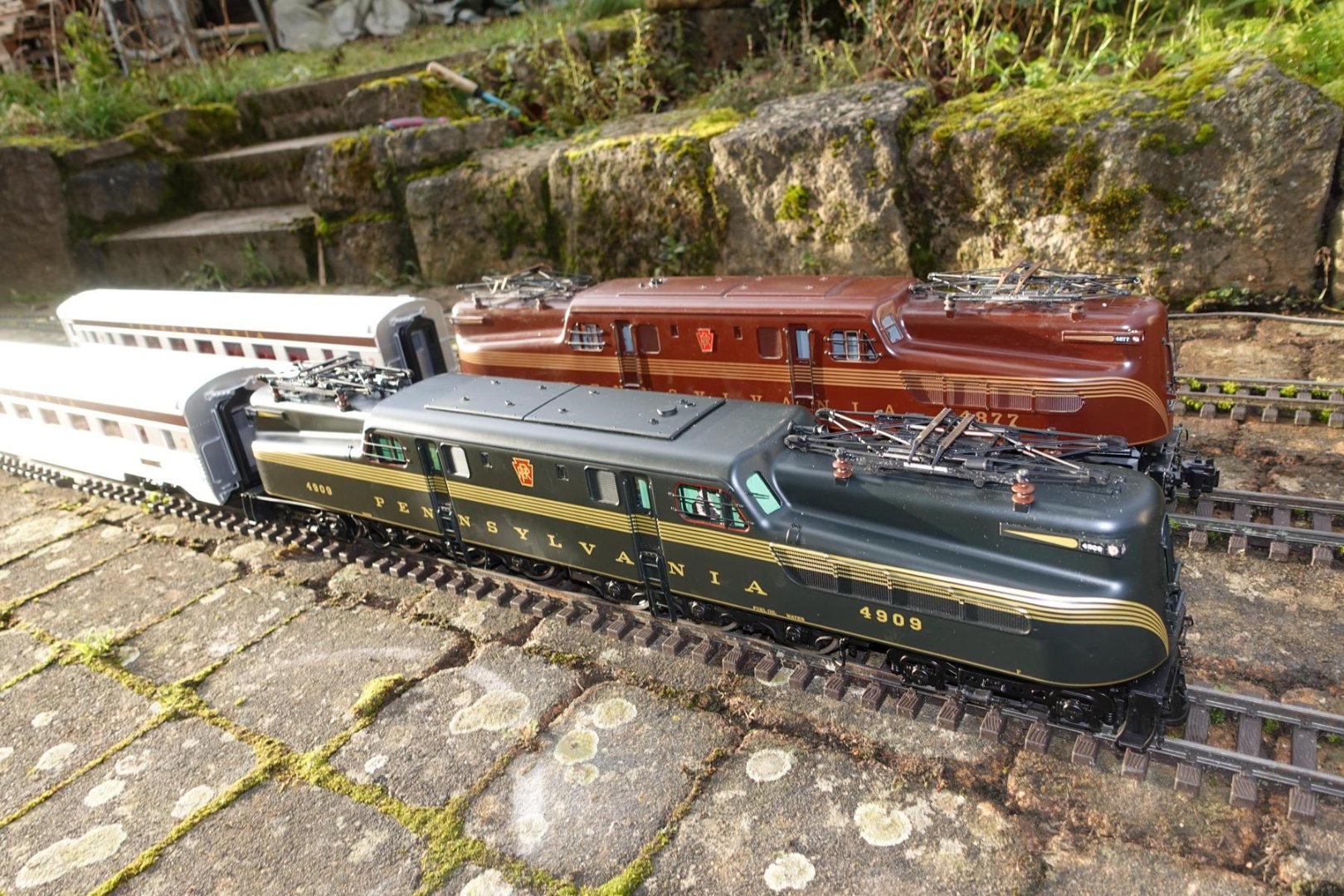an anderer Stelle habe ich eine (gebrauchte) Neuanschaffung von mir gezeigt, die GG1 von LGB, und wurde gebeten, diese mit der GG1 von USA-Trains zu vergleichen. Diese ist seit ein paar Jahren in meinem Besitz. Nun bin ich gar kein Freund davon, Äpfel mit Birnen zu vergleichen. Bald kommt ja auch die Shay von LGB (Märklin) auf den Markt und Bachmann hatte die Lok ja auch schon mal im Portfolio, letztere ist auch in meinem Bestand. Bei diesen beiden Loks wird ein Vergleich noch schwieriger, weil die Bachmann-Lok eine (relativ billige) Kunststoff-Lok ist und die LGB-Shay als Metall-Lok im Premium-Sektor anzusiedeln ist. Aber bei den vorgenannten GG1-Loks ist der Unterschied nicht so groß, beide sind Metall-Loks und im Preis (UVP) nicht gar so weit auseinander. Also mache ich zumindest mal einen oberflächlichen Vergleich, wenn ich schon darum gebeten werde. Ich strebe aber ausdrücklich KEINEN Test an.