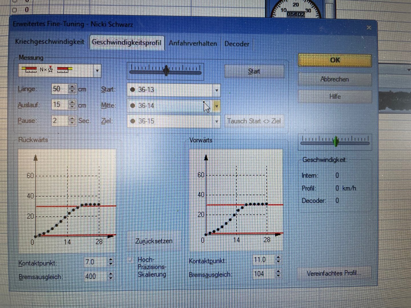 2. Anahrverzögerung/ Bremsverhalten/ Betriebsvorräte in der virtuellen Lok überprüft?