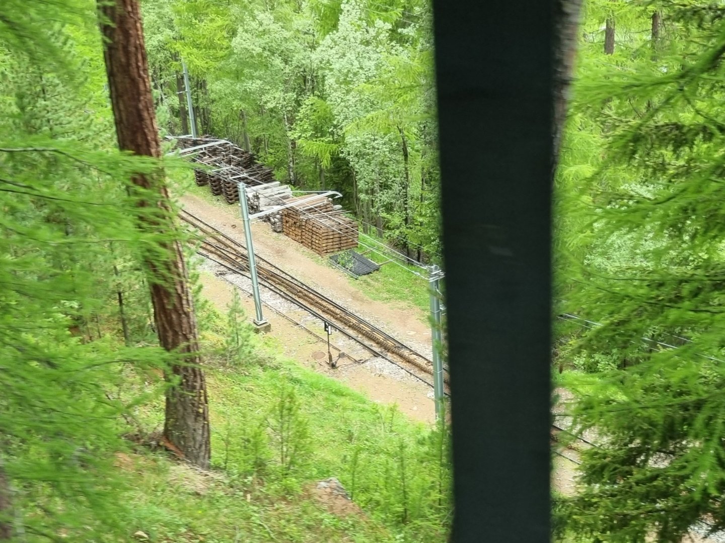 Blick aus dem Hotelzimmer auf den Bahnhof Zweisimmen. Der Bahnverkehr ist so leise, man hat nichts davon mitbekommen.