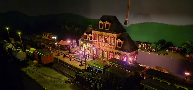 Früher zu H0-Zeiten waren Beleuchtungen selbstverständlich. Häuser, Bahnsteige, Straßen... Auf meinen Modulen sind zumindest fast alle Häuser beleuchtet. Meine Kulissenhäuser hingegen...