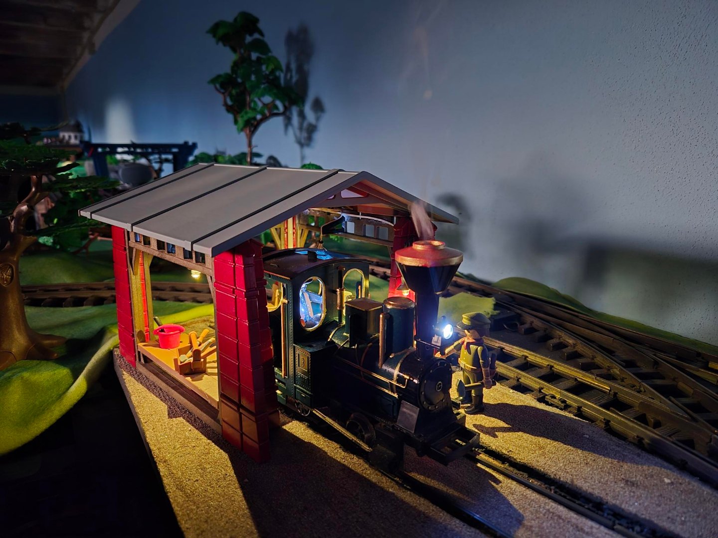 Früher zu H0-Zeiten waren Beleuchtungen selbstverständlich. Häuser, Bahnsteige, Straßen... Auf meinen Modulen sind zumindest fast alle Häuser beleuchtet. Meine Kulissenhäuser hingegen...