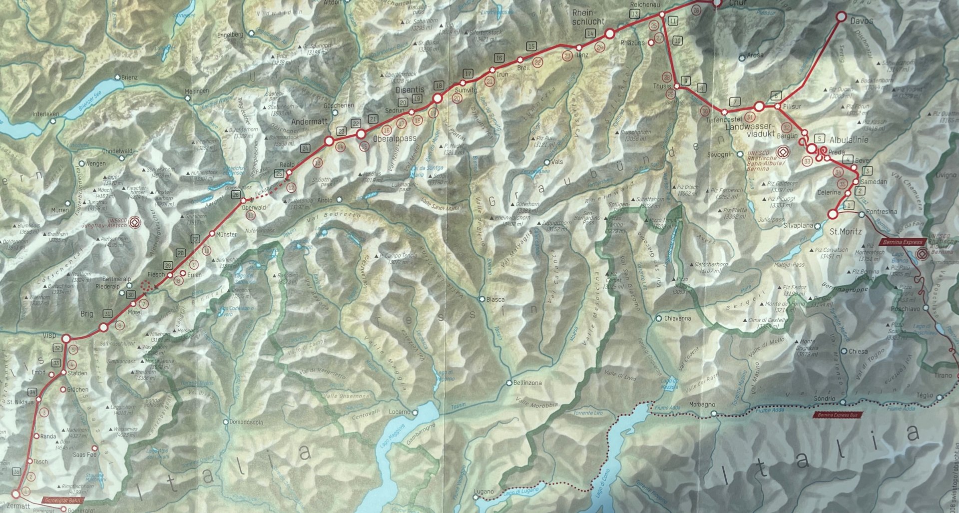 Wer sich für das Thema um den Glacier-Express interesiert, dem sei die ARD Mediathek mit der Reihe Eisenbahnromantik empfohlen. Wir haben nicht gefilm, was aus dem fahrenden Zug heraus auch nicht sooo viel bringt, wollen jedoch einige Bilder zeigen.