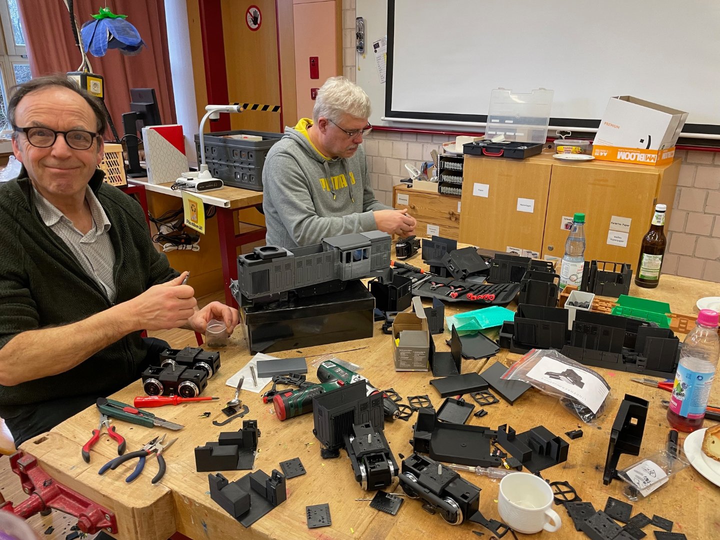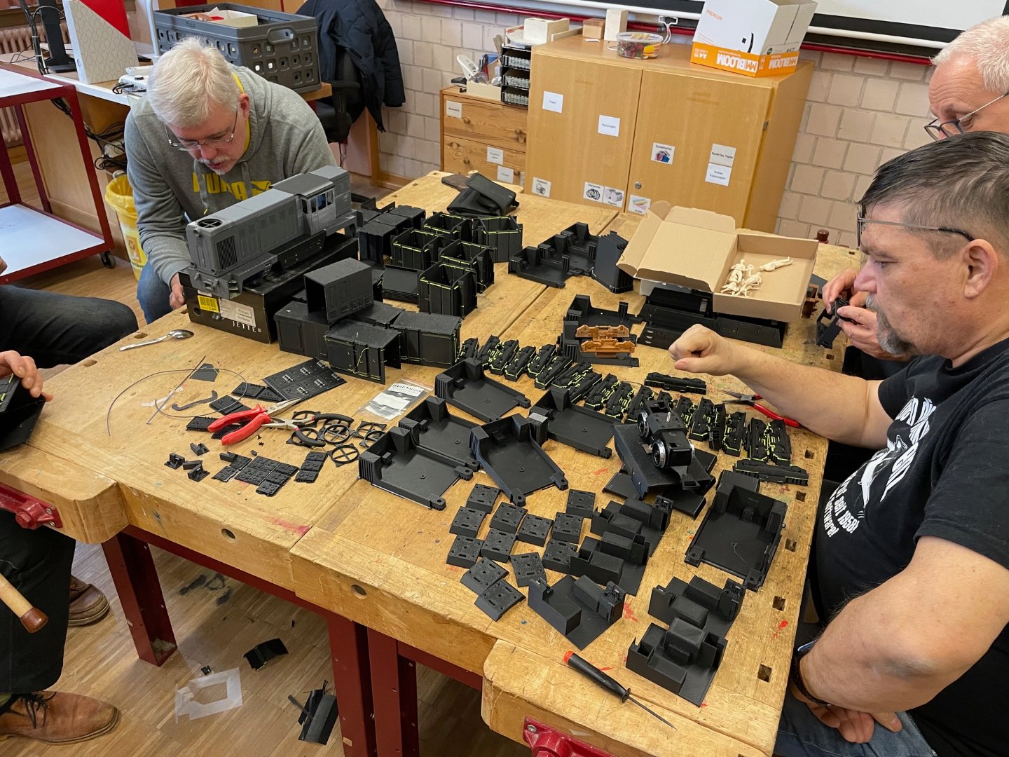 Nach monatelangem 3D-Drucken gabe es heute zwei große Haufen mit Druckteilen zum Entfernen der Stützstrukturen.